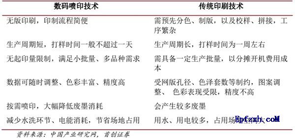 数码印花技术与传统印花技术相比具备多种优势,代表未来发展方向。数码印花技术与传统印花技术相比,具备流程简便、个性化程度高、无起印量限制、环保降耗等特点: