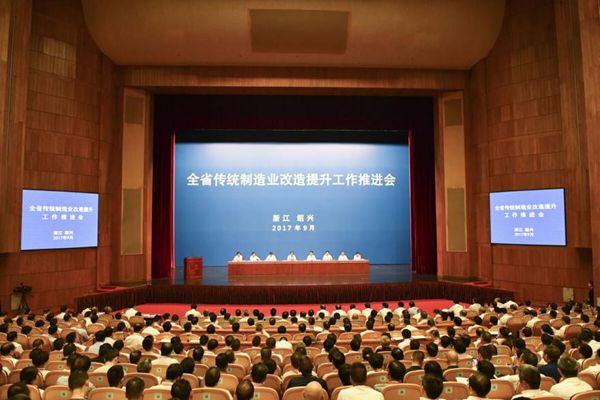 (浙江省召开的全省传统制造业改造提升推进大会会场)