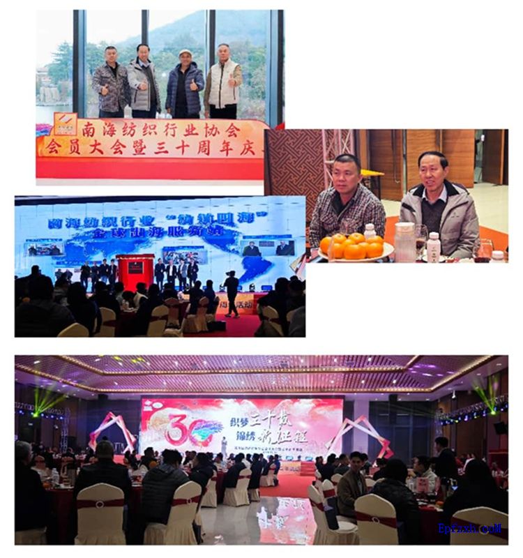 随后,前往西樵会展中心,受邀参加南海区纺织行业协会成立 30 周年庆祝活动。本次活动以 “织梦 30 载,锦绣新征程” 为主题,集中展现了南海纺织产业从抱团发展到品牌升级的三十年发展成果,从早期简单再生产到如今推动 “西樵面料” 集体商标升级、构建全产业链协同体系,南海纺织的转型之路为我们提供了宝贵经验借鉴。活动现场,相互间广泛交流,围绕绿色低碳、数字赋能、时尚创新等行业热点深入探讨,既增进了同行情谊,也挖掘了潜在合作机遇。